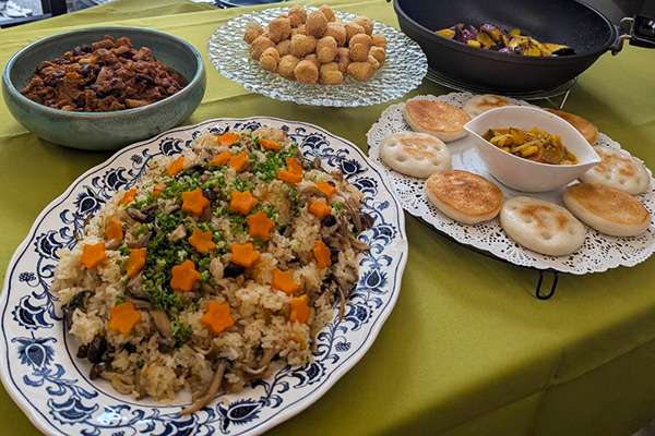 おこわと煮込み、どちらも野菜たっぷりのとってもヘルシー&美味しいお料理でした。
